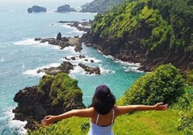 7. Berdansa di tengah ciptaan Tuhan paling indah, di Bukit Pengilon, Pantai Siung, Gunungkidul.