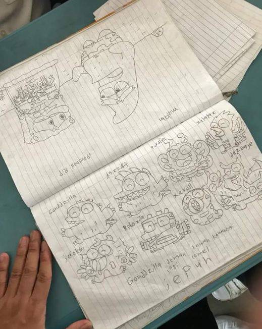 1. Sketsa Haiqal Iskandar di buku tulisnya.