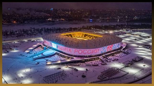 Berada di 20 mil dari laut Azov Rusia timur selatan, stadion ini memiliki ketinggian 51 meter, dan memiliki kapasitas 45 ribu tempat duduk. 11. Stadion Nizhny Novgorod