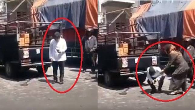 Dalam video berdurasi 25 detik itu terlihat risma tengah berkomunikasi dengan menggunakan HT di pinggir jalan. Risma yang mengenakan baju putih dan celana hitam itu lalu terlihat menunduk dan berjongkok.