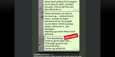 BERITA LUCU INDONESIA - Pesan berantai via grup percakapan sebuah aplikasi pesan yang menyebutkan bahwa makanan yang dipesan melalui salah satu layanan Go-jek, Go-Food, diracun tidak benar.