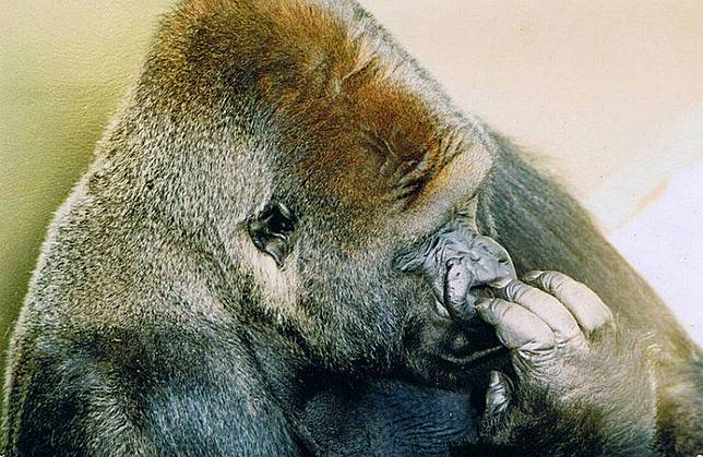 Ketika bocah itu sadar dan mulai menangis, Jambo dan gorila lainnya panik dan mundur.