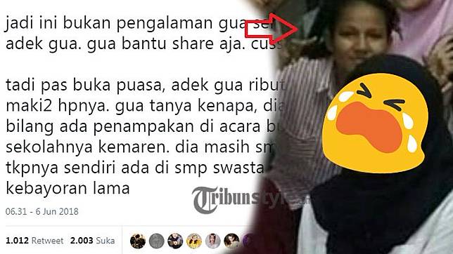 Dilansir TribunStyle.com dari akun Twitter @rvrayal, ia membagikan pengalaman sang adik yang masih duduk di bangku SMP.