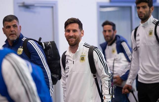 4. Messi dan rekan setimnya dari Argentina mengenakan pakaian sport.
