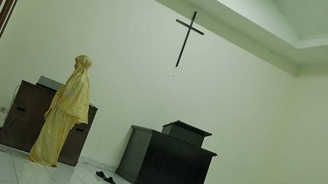 BERITA LUCU INDONESIA - Belum lama ini viral foto seorang wanita yang sedang salat di gereja. Akun Twitter @_ramadhanyaya pada Sabtu (3/6) memposting foto wanita tersebut yang sedang salat di Gereja GPIB Pniel (Gereja Ayam), Pasar Baru, Jakarta.