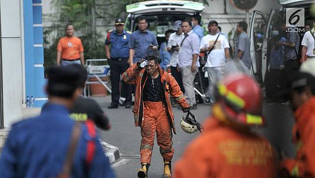 "#InfoKebakaran | Jl. Merdeka Barat | Situasi Proses pemadaman & evakuasi korban (asap masih tebal) | Pencarian korban dilanjutkan dari lantai 12 - Toproof, Korban di Lt.5 & Lt.12 status 8.1.0, Akses pintu byk yg terkunci, sehingga menyulitkan untuk pencarian korban dilantai atas," tulis tulis Dinas Penanggulangan Kebakaran dan Penyelamatan (DPKP) DKI Jakarta dalam akunnya, @humasjakfire yang dikutip Liputan6.com, Minggu 8 Juli 2018.