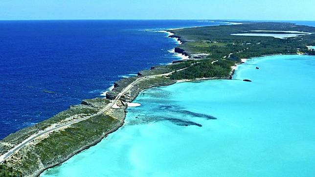 Strip batu selebar 30 kaki ini berada di Queen's Highway, Gregory Town, Central Eleuthera, Bahama.