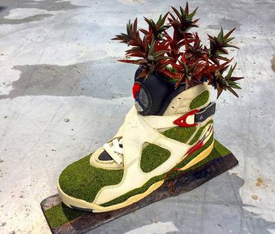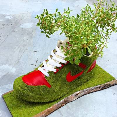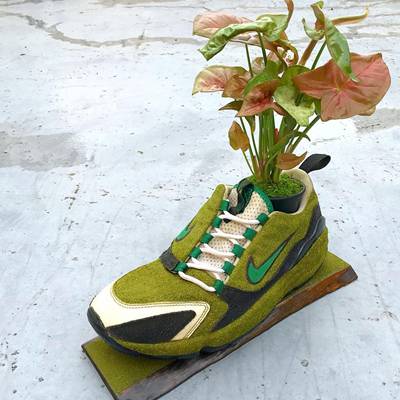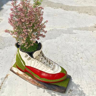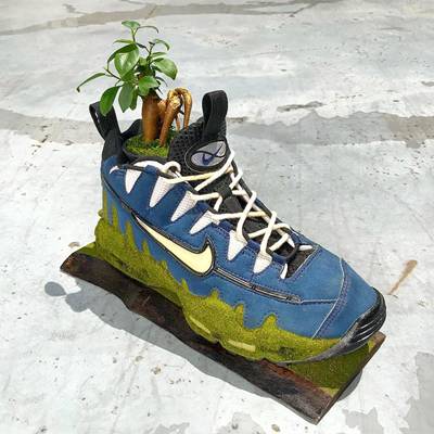Hal ini rupanya berbeda dengan seorang seniman asal Jepang bernama Kosuke Sugimoto atau lebih populer dengan nama Shoetree. Pria ini justru menjadikan sepatu-sepatu Nike klasik menjadi pot tanaman.
